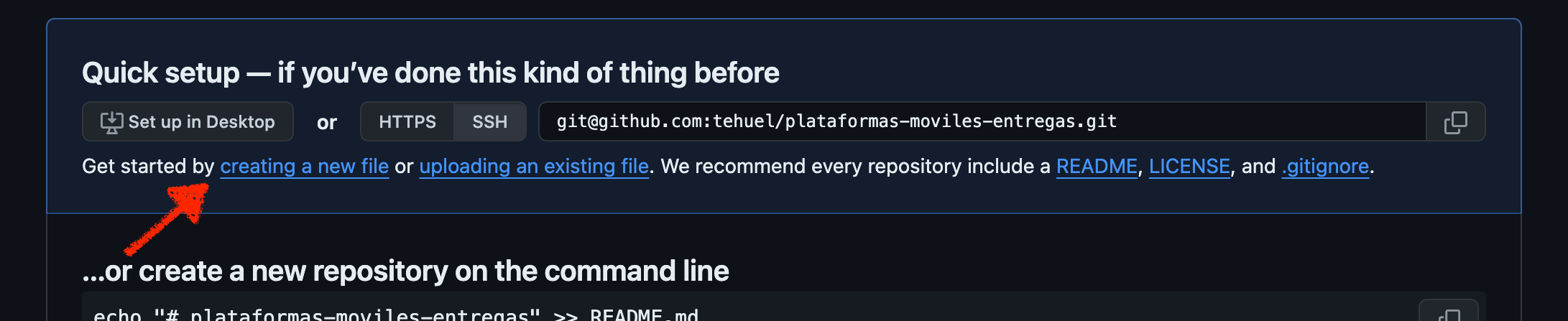 Crear un nuevo repositorio, con el nombre plataformas-moviles-entregas.