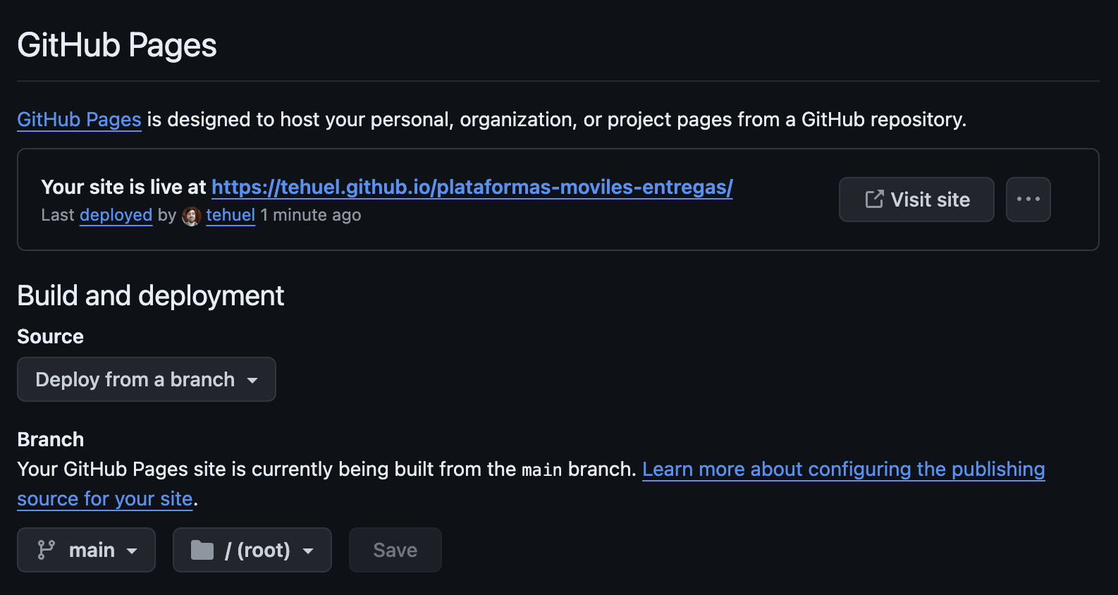 Si acceden a la URL http://{usuario}.github.io/plataformas-moviles-entregas deberian ver la página publicada.